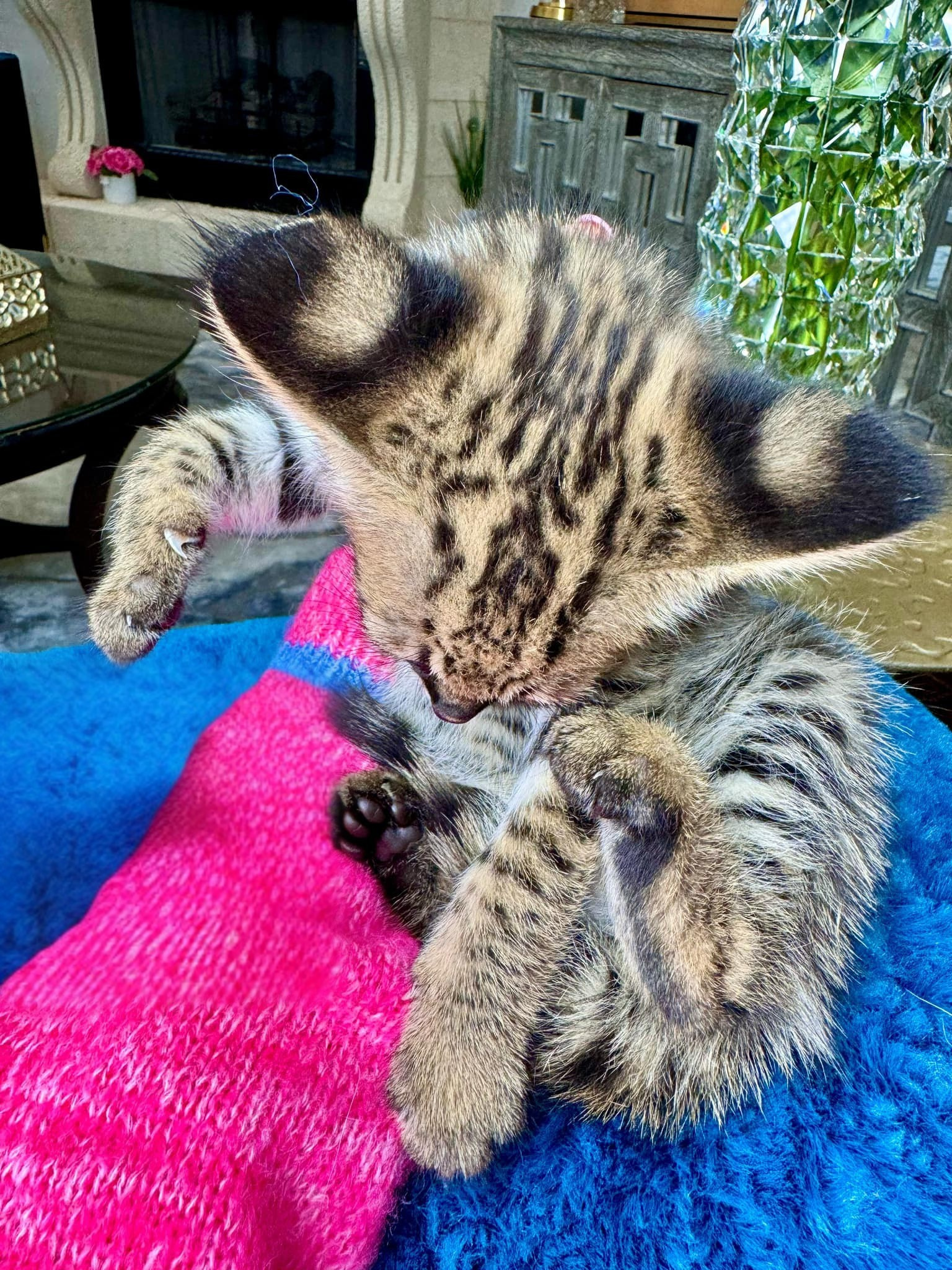 Raised in a nurturing environment, Berlingo is well-socialized and comfortable around people. He is curious, energetic, and highly intelligent, often engaging in interactive play and quickly learning new behaviors. Like many Savannah cats, he enjoys climbing, exploring, and staying active throughout the day. This makes him ideal for homes that can provide space, enrichment, and regular interaction.